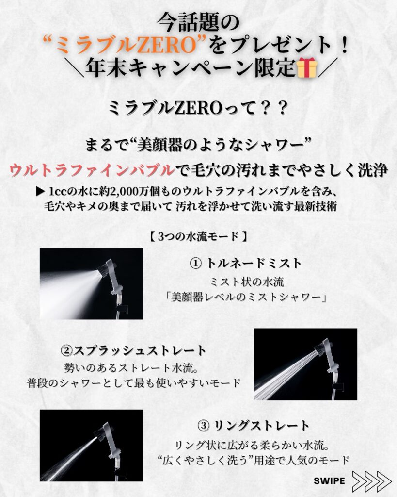 【年末キャンペーンのお知らせ】高級シャワーヘッド「ミラブルzero」をプレゼント!